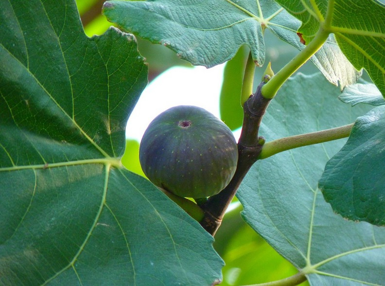 Feigenrost: Rostfarbene Flecken auf Blättern, Früchten, gefördert durch Feuchtigkeit.