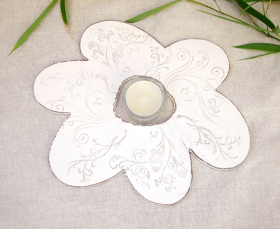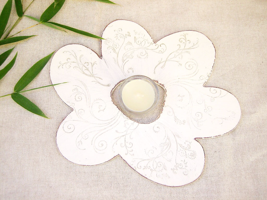 Mit zarten goldenen oder braunen Ornamenten verziert gibt die Blüte “fleur” dem liebevoll gedeckten Tisch ein festliches Aussehen. Der zarte Lichtschimmer einer Kerze, die in der Mitte aufgestellt werden kann, verleiht der Blüte fleur Romantik..