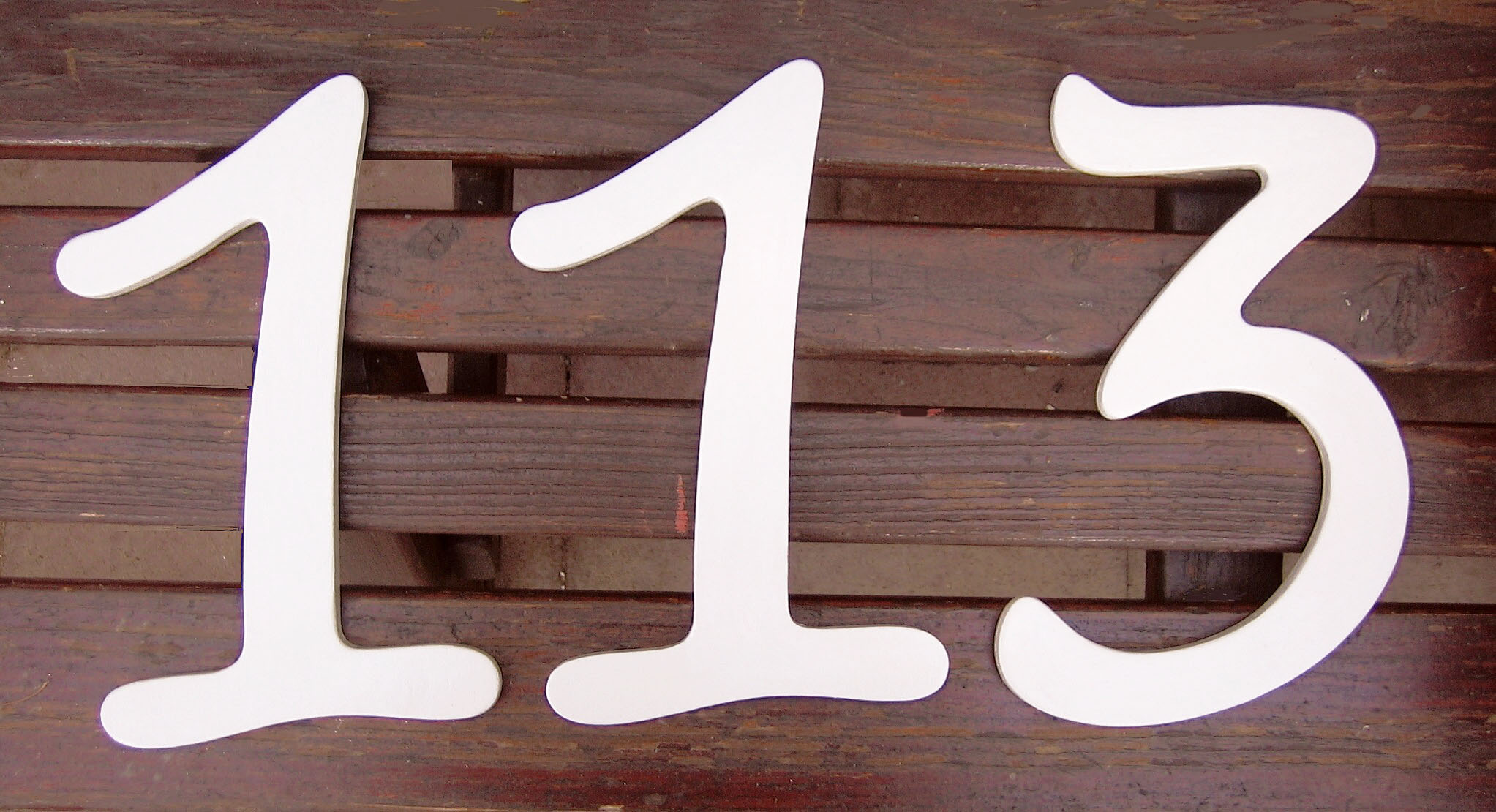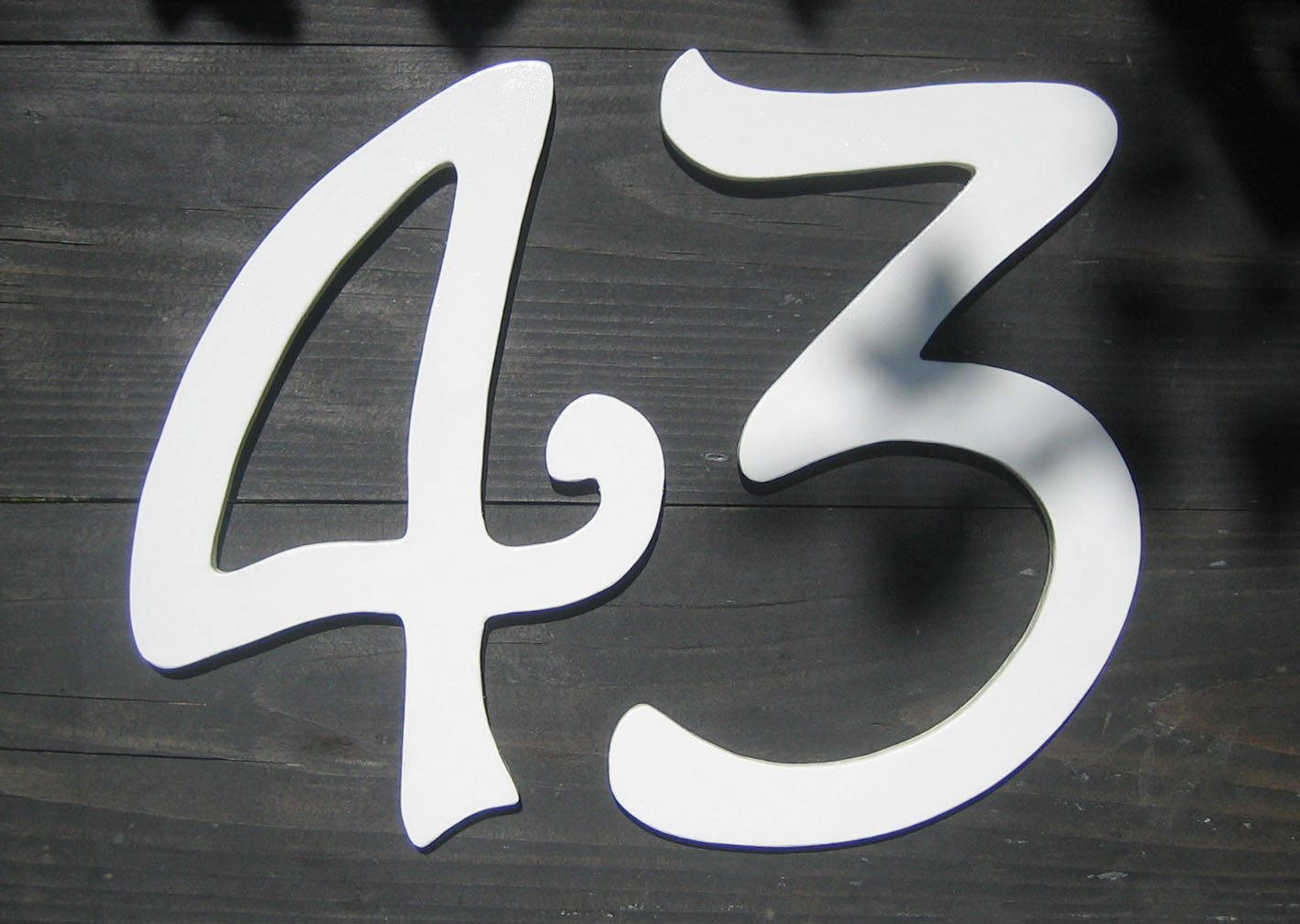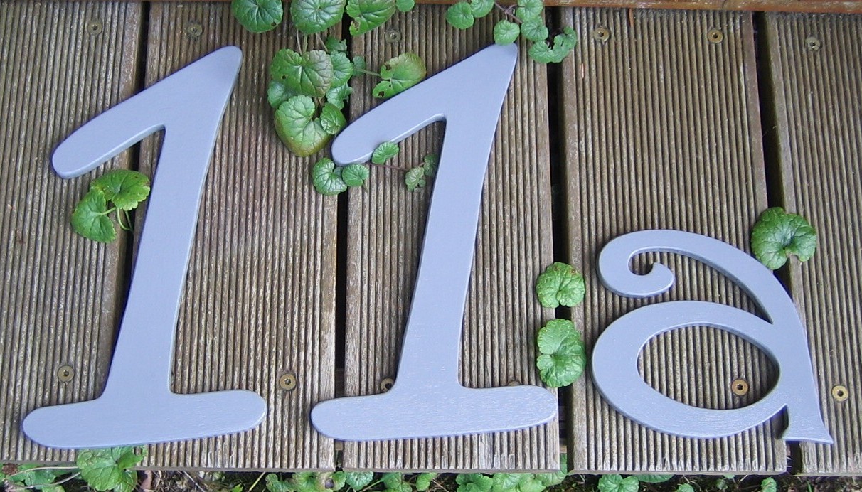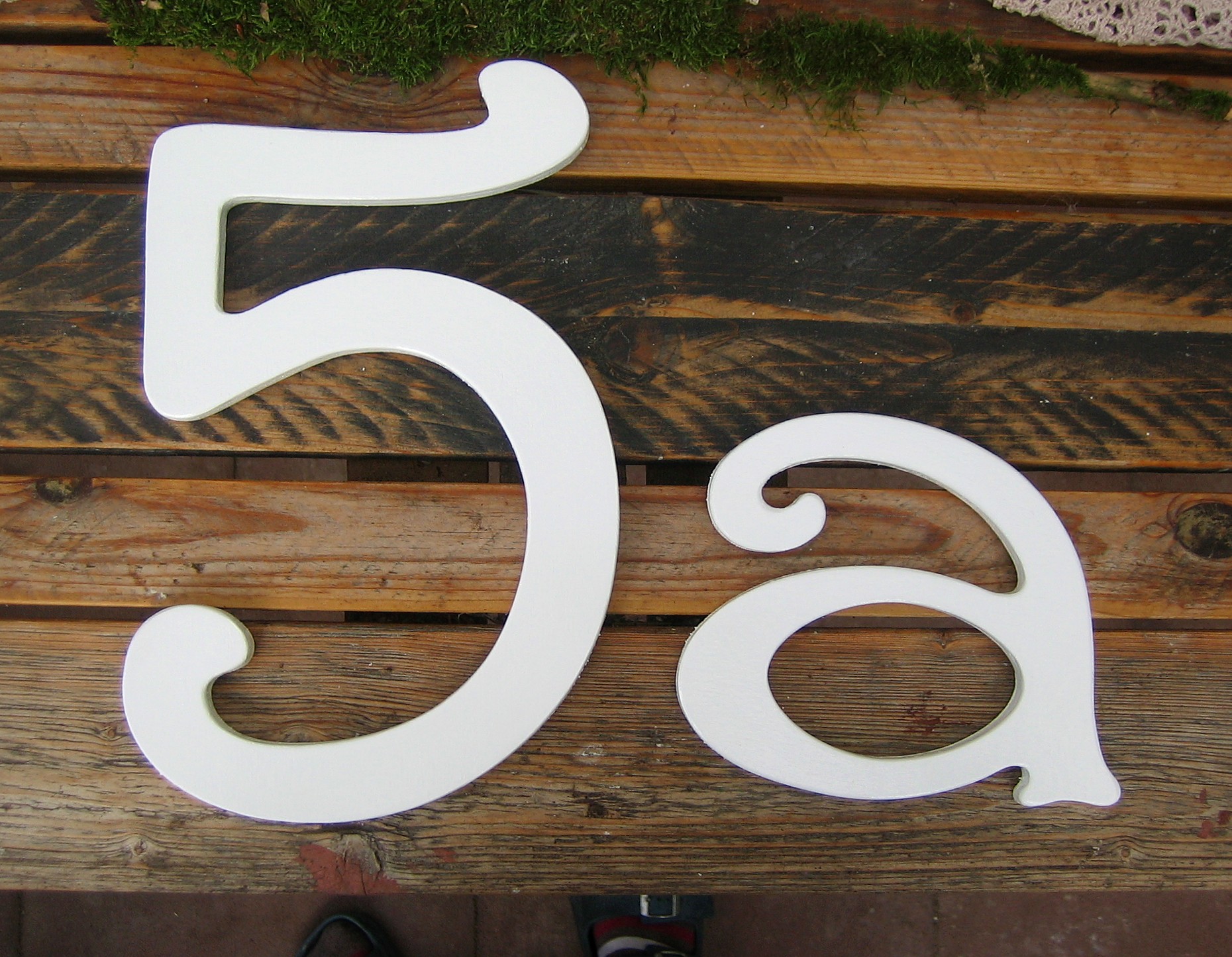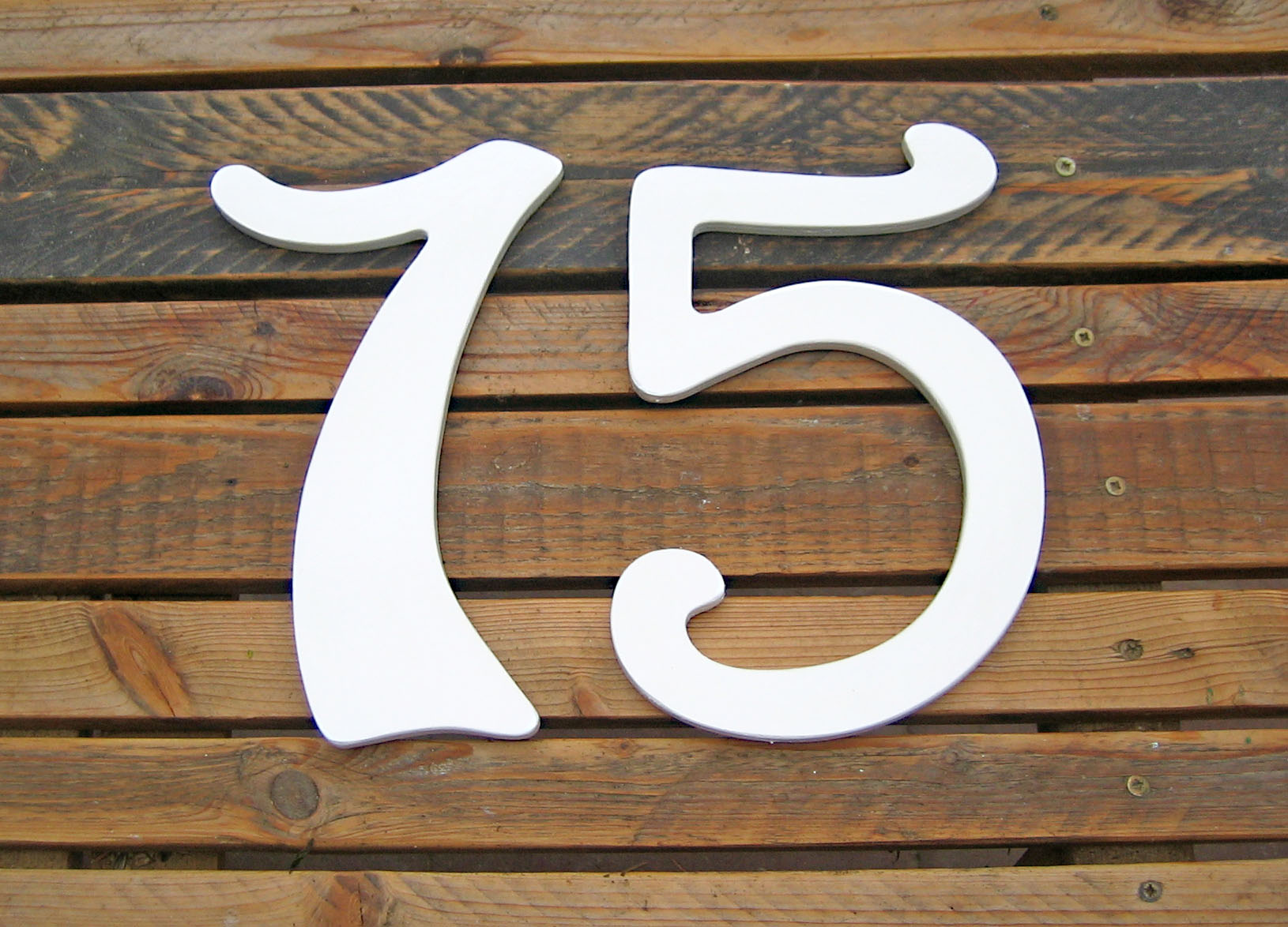 Diese “unübersehbare große” und sehr wirkungsvolle Hausnummer aus Holz ~ gesägte Zahlen ~ ist bestechend in ihrer Größe, Form und Farbe.