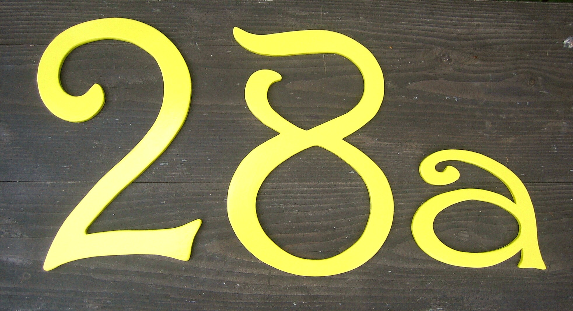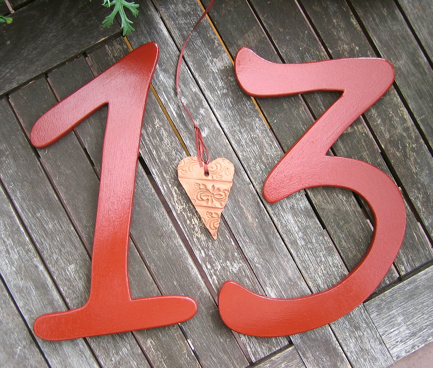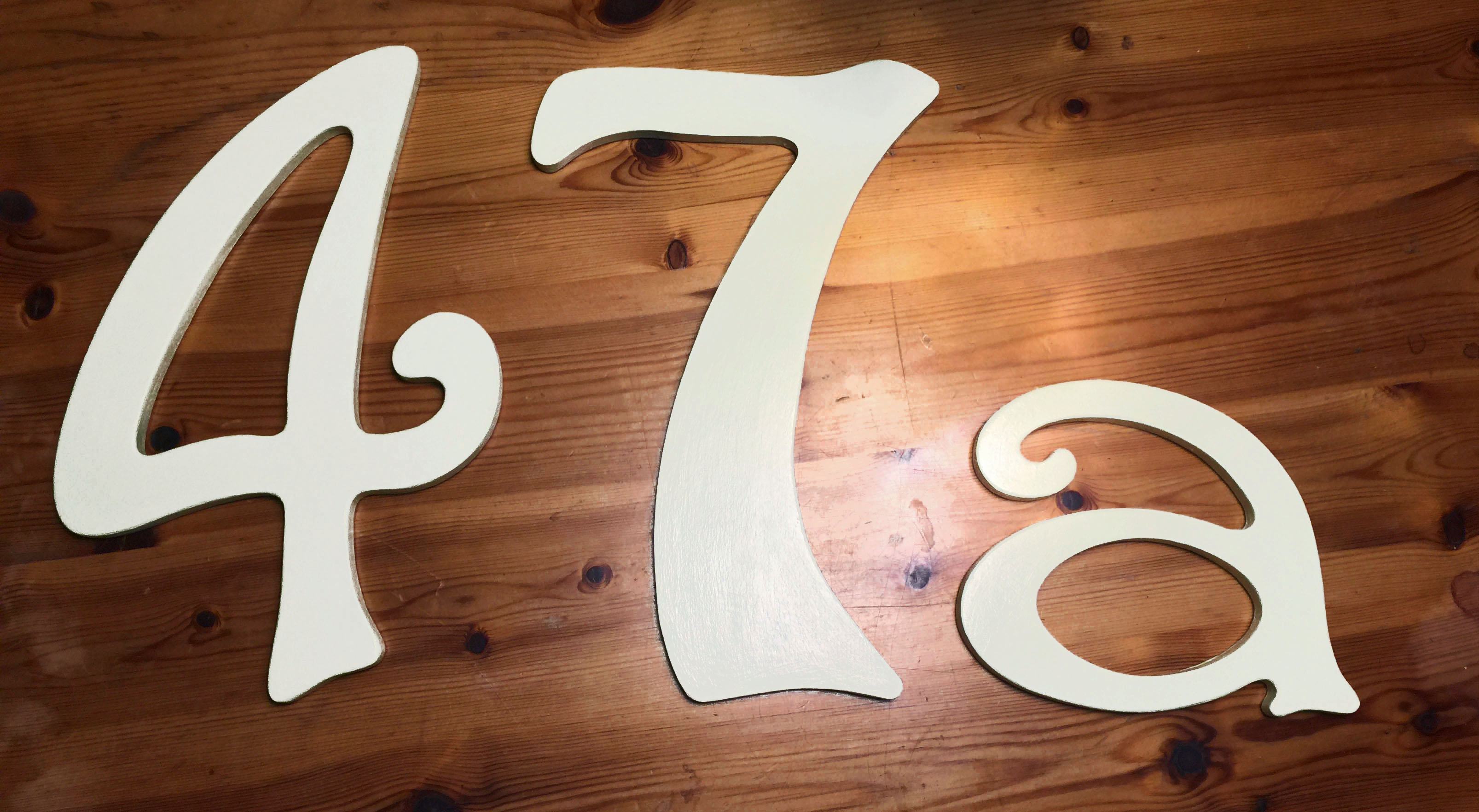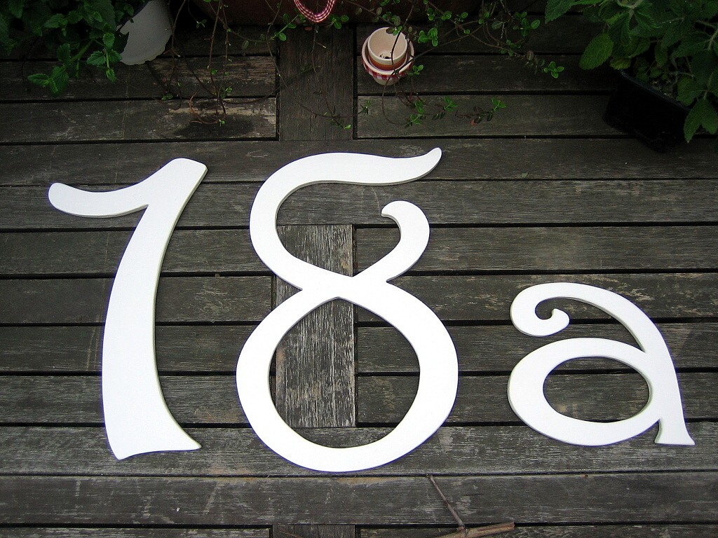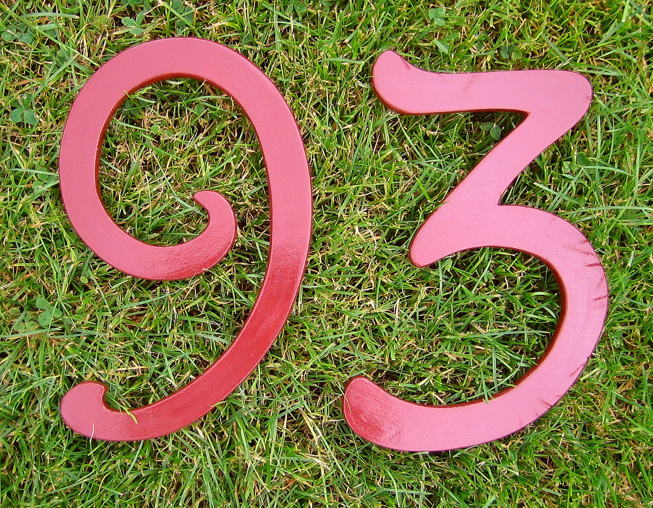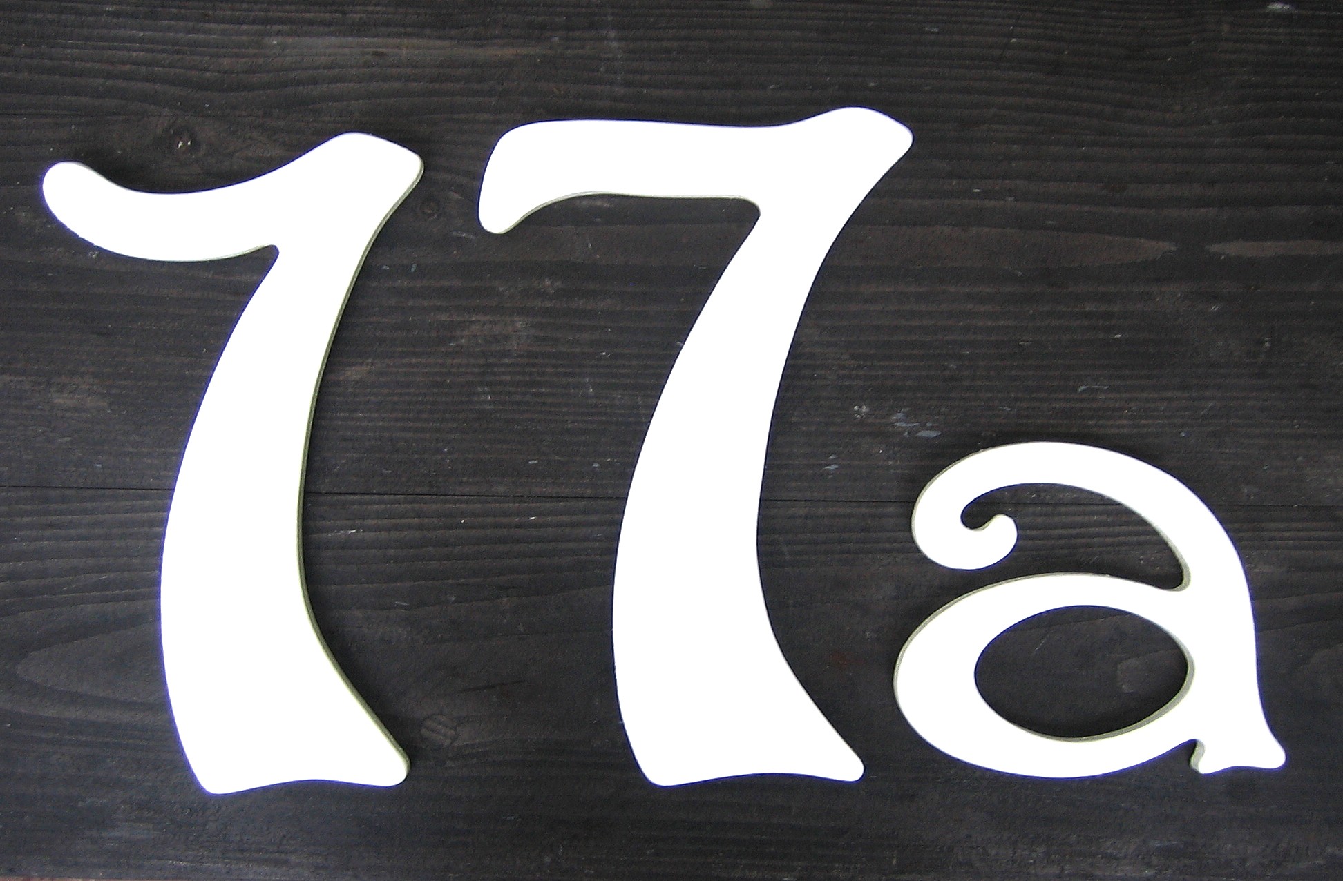 Diese “unübersehbare große” und sehr wirkungsvolle Hausnummer aus Holz ~ gesägte Zahlen ~ ist bestechend in ihrer Größe, Form und Farbe.