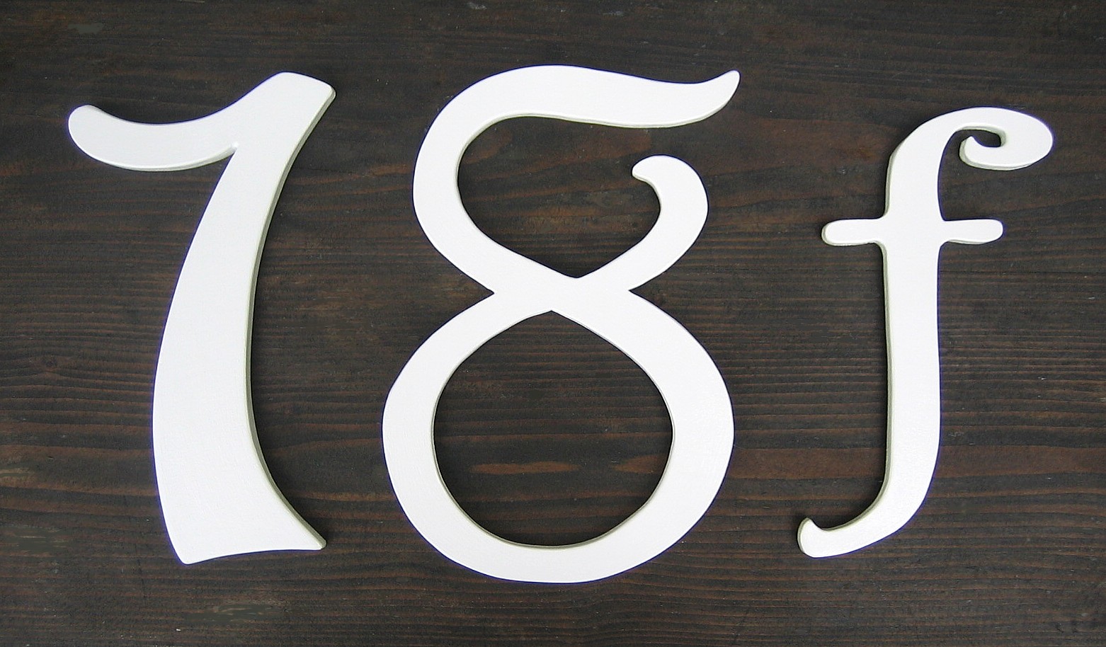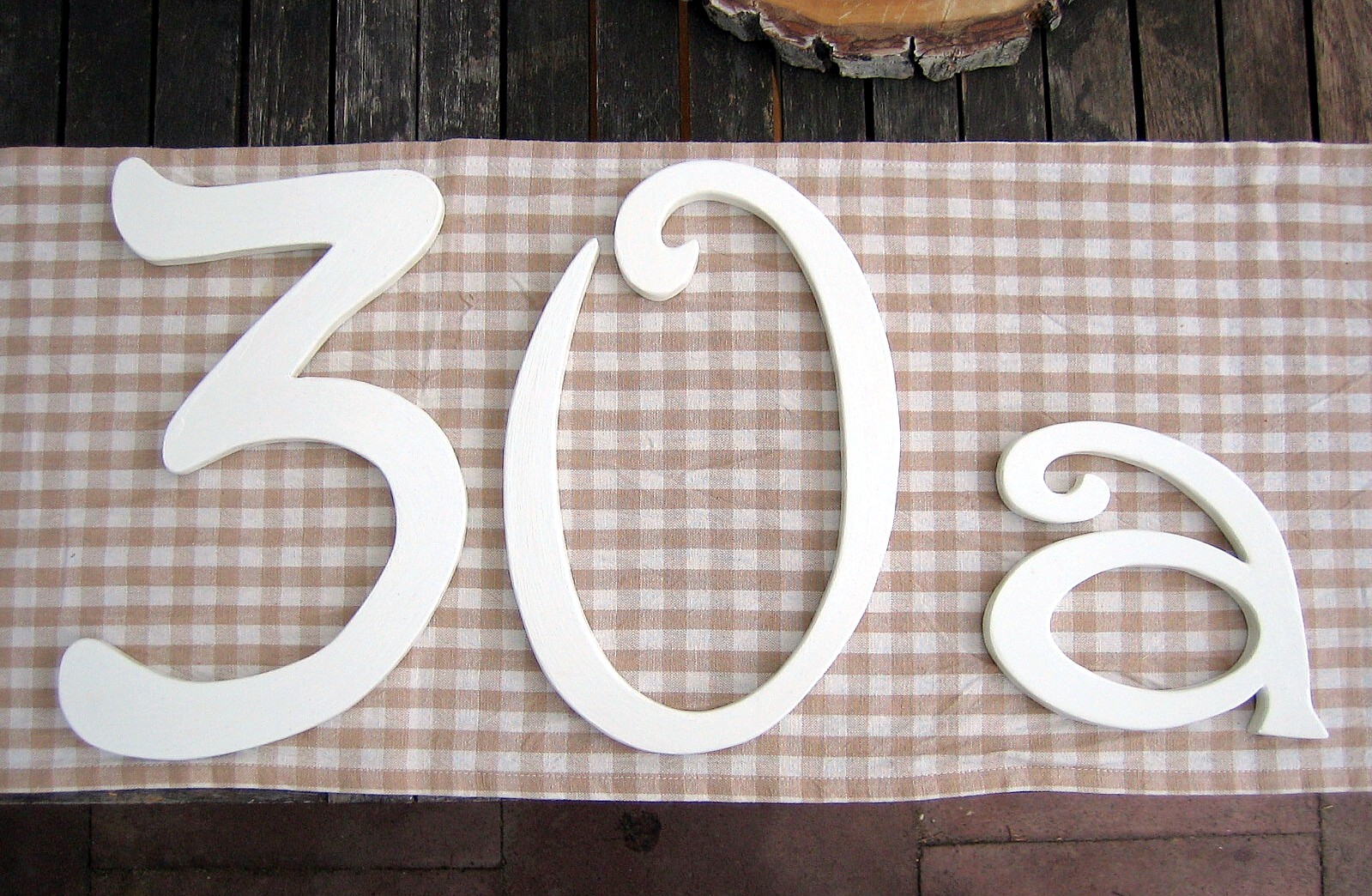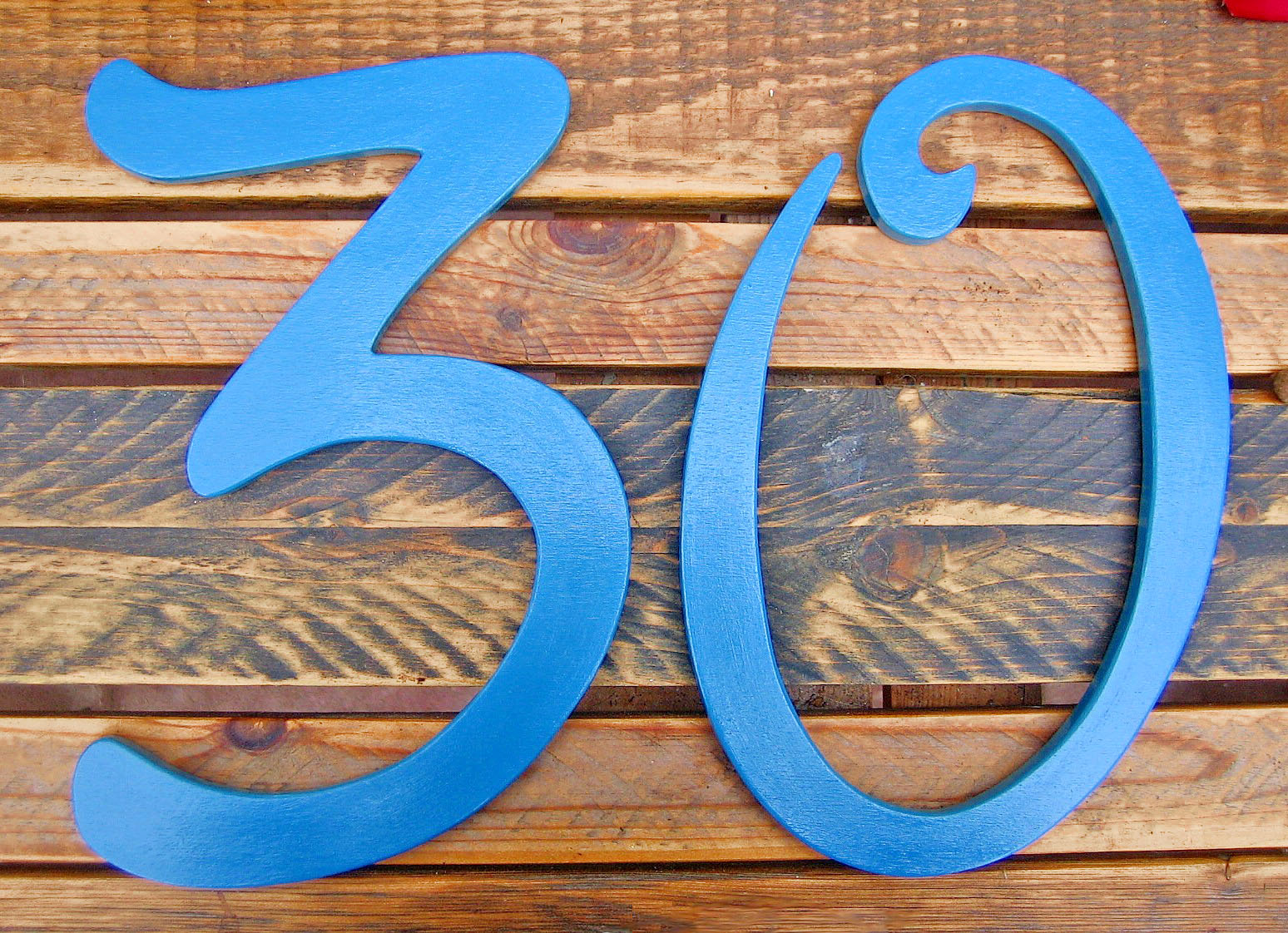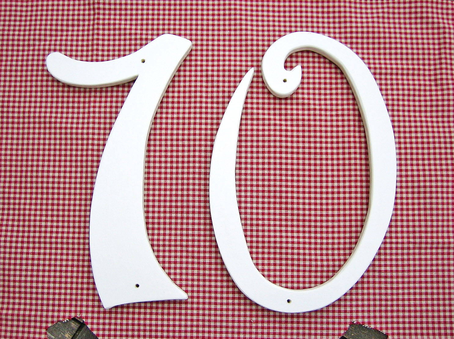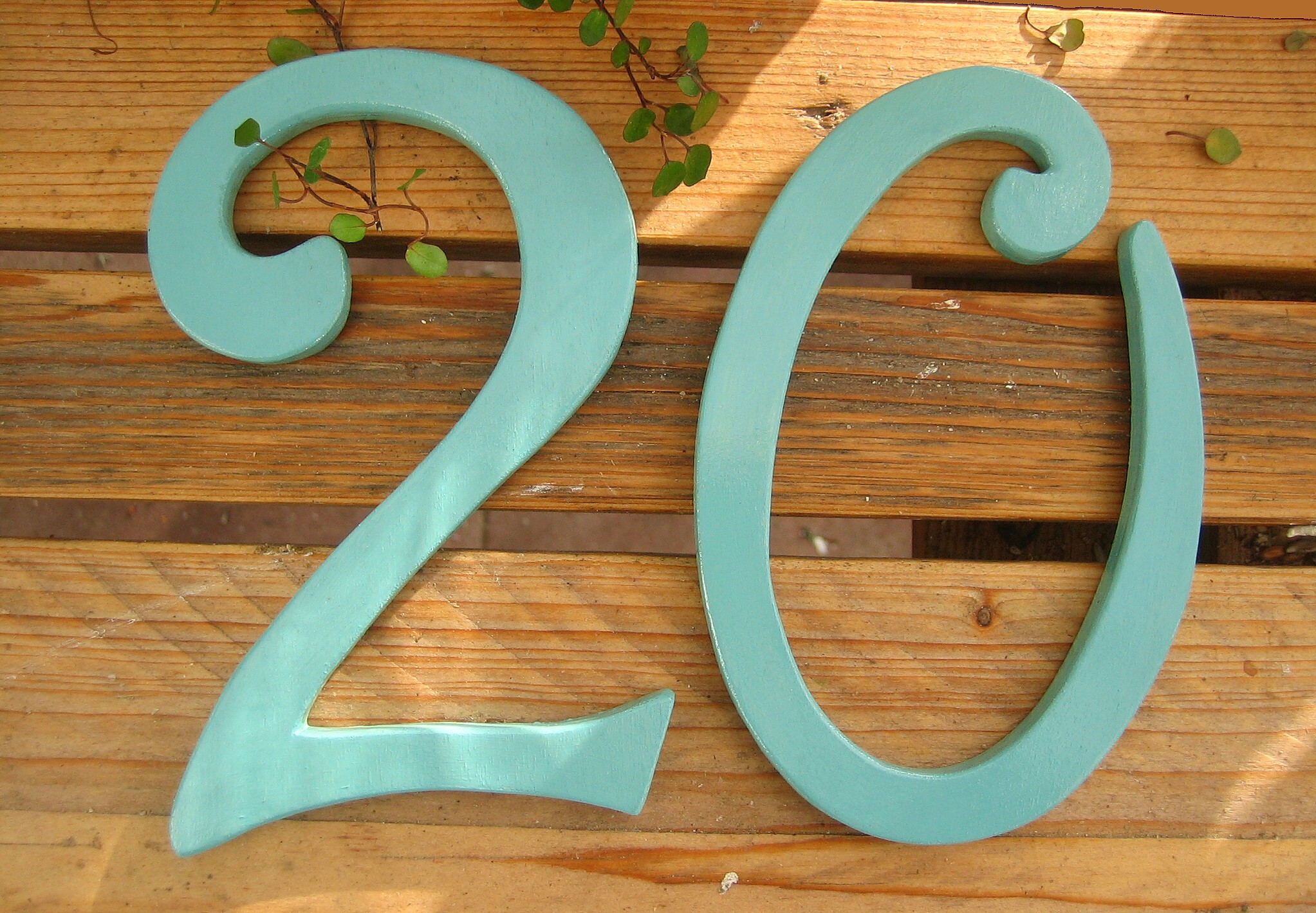 Diese “unübersehbare große” und sehr wirkungsvolle Hausnummer aus Holz ~ gesägte Zahlen ~ ist bestechend in ihrer Größe, Form und Farbe.